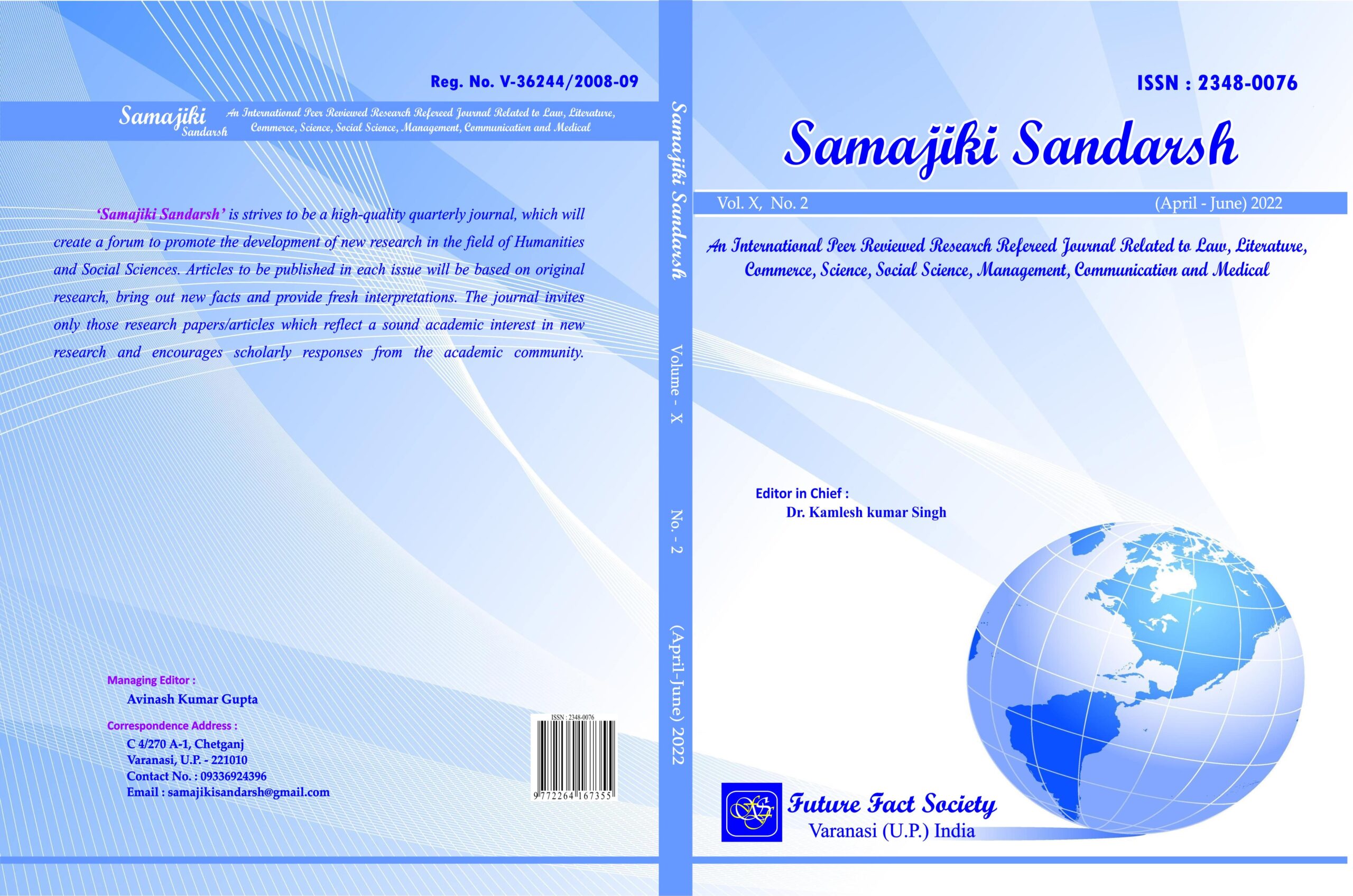 It is a great honour to me to extend my warm greetings and welcome you all to Samajiki Sandarsh a peer reviewed refereed journal of multidisciplinary research. The journal, which is a peer-reviewed, will devote to the promotion of multi-disciplinary research and explorations to the South Asian and global community. It is our objective to provide a platform for the publication of new scholarly articles in the rapidly growing field of various disciplines. We are trying to encourage new research scholars and postgraduate students by publishing their papers so that they may learn and participate in literary publishing through a professional internship. Scholarly and unpublished research articles, essays and interviews are invited from scholars, faculty researchers, writers, and professors from all over the world.
